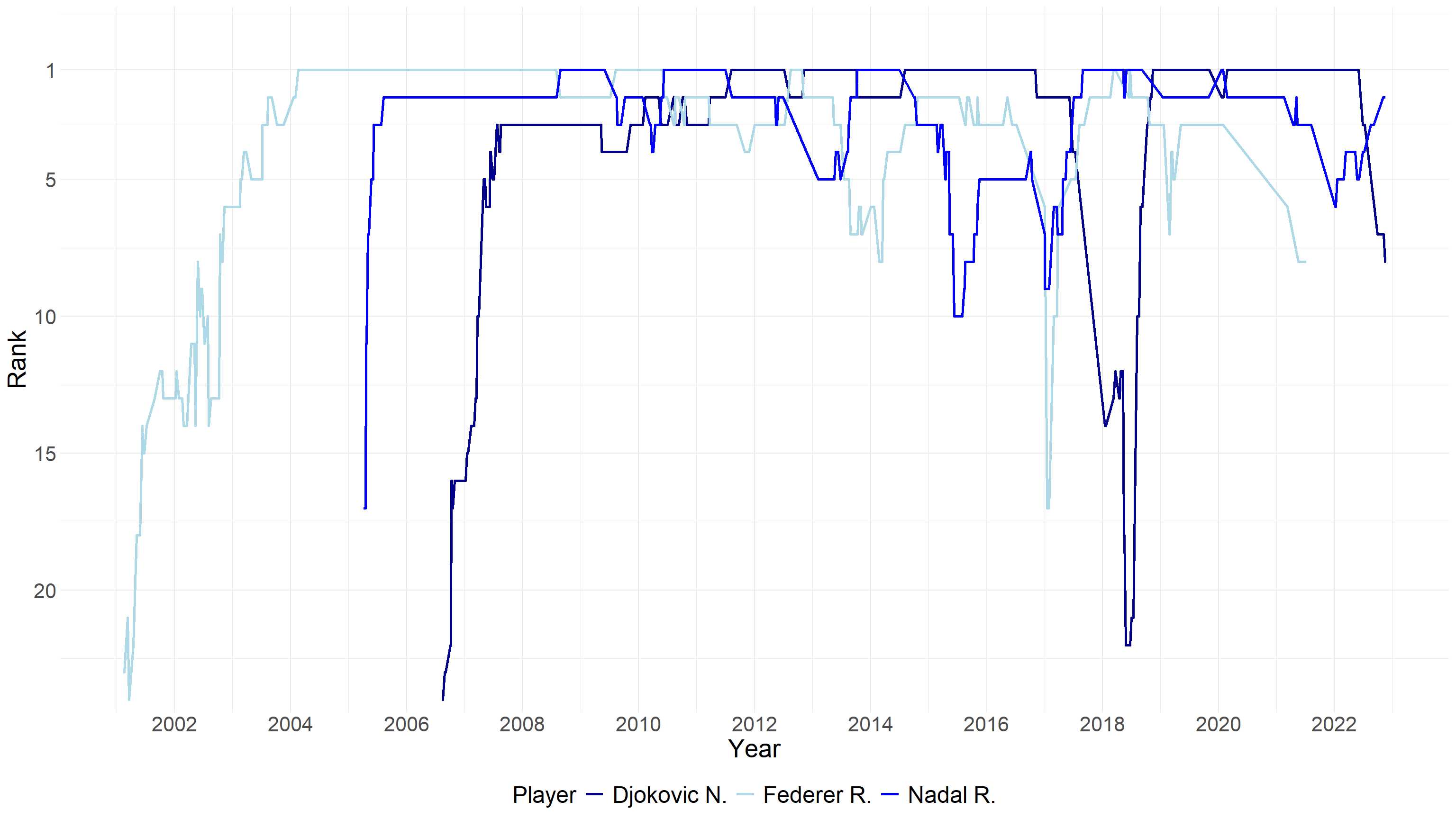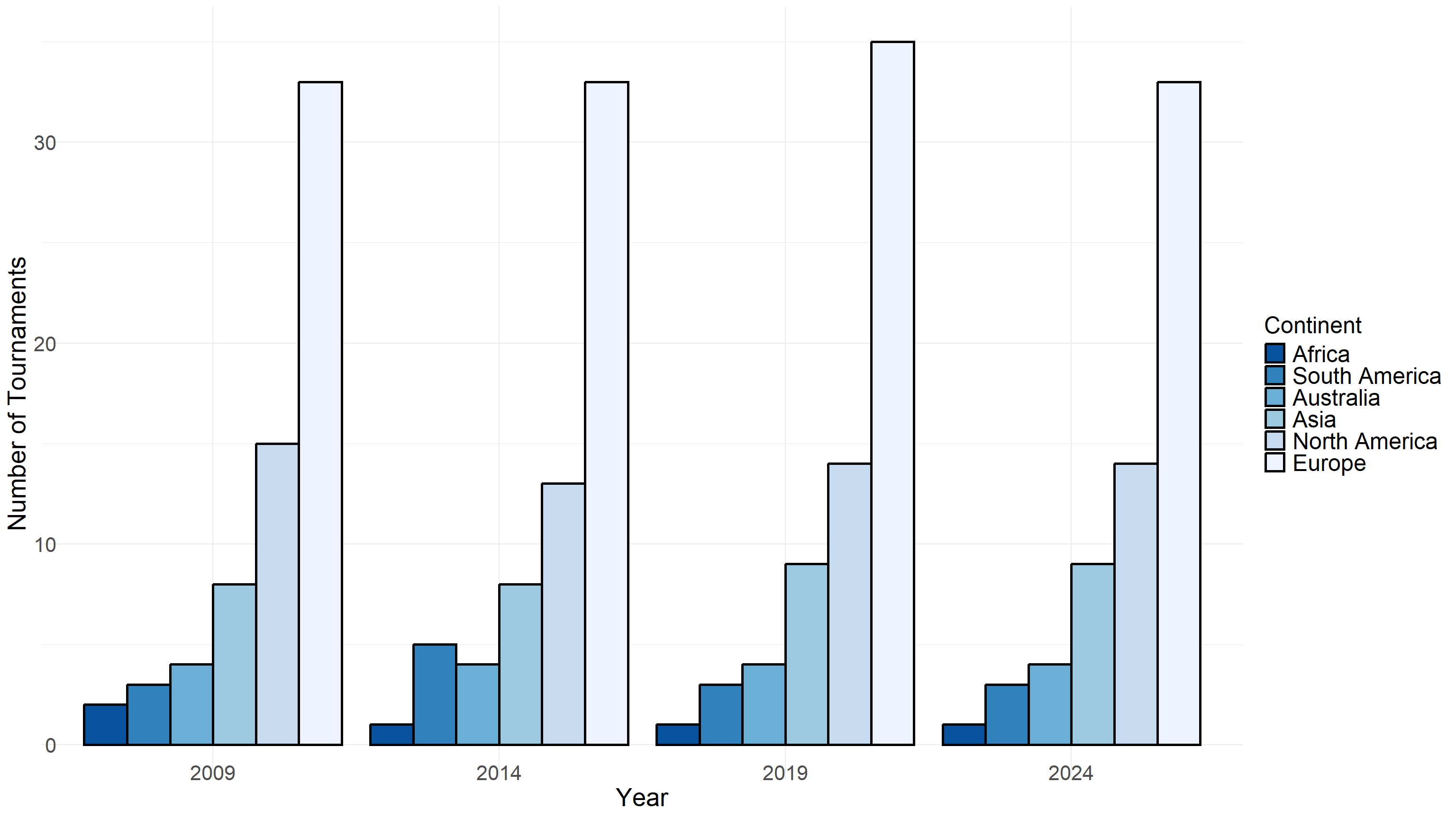 This report visualizes key aspects of men professional tennis, focusing on tournament distribution, player rankings, and match outcomes. The charts provide insights into Novak Djokovic’s dominance, the global spread of tournaments, and the evolution of betting odds at different stages. Together, these visualizations reveal trends in competition and players’ performance over the years (2000-2024).